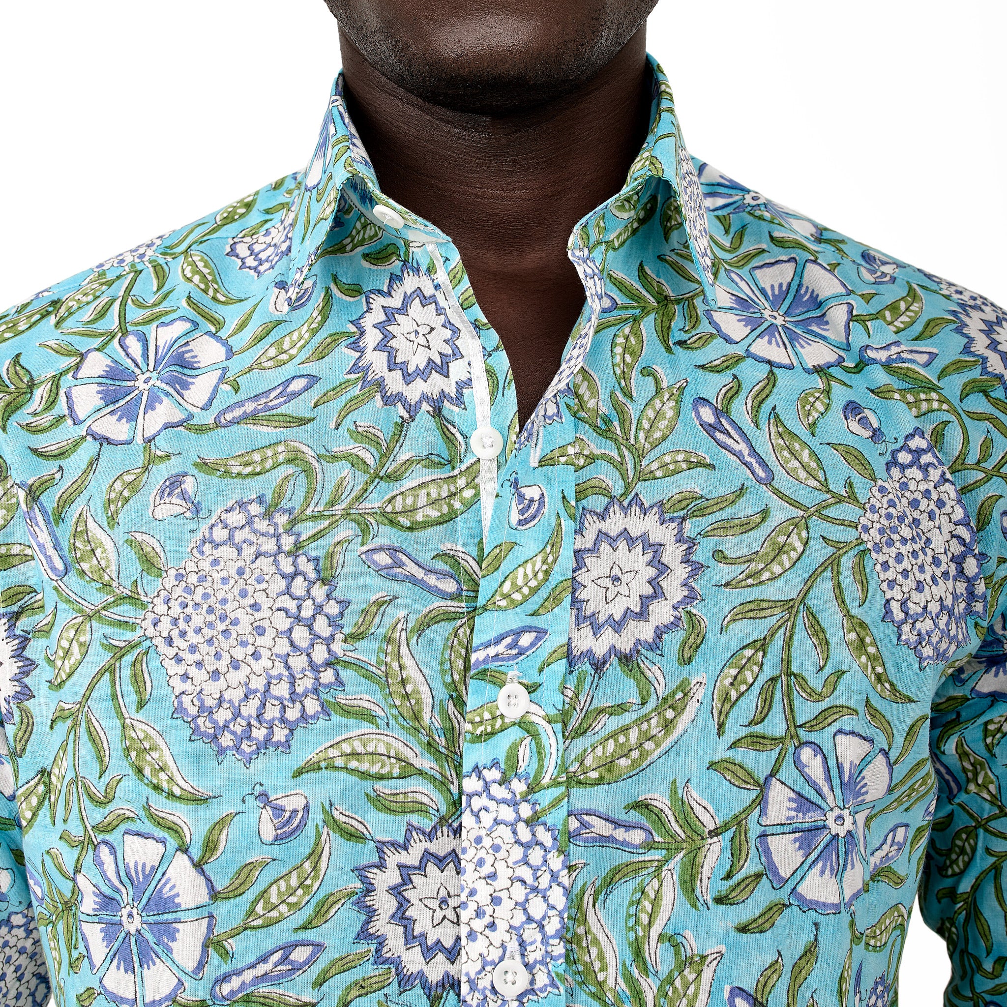 Experience the beauty of a passion fruit flower with the Shauku Mens Shirt. Featuring an eye-catching blue and white design, this shirt is perfect for expressing your unique style.