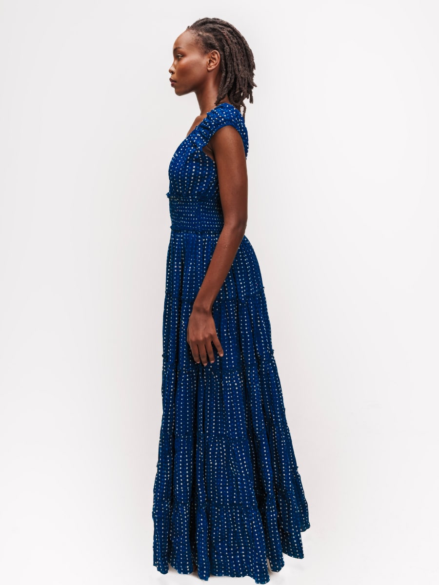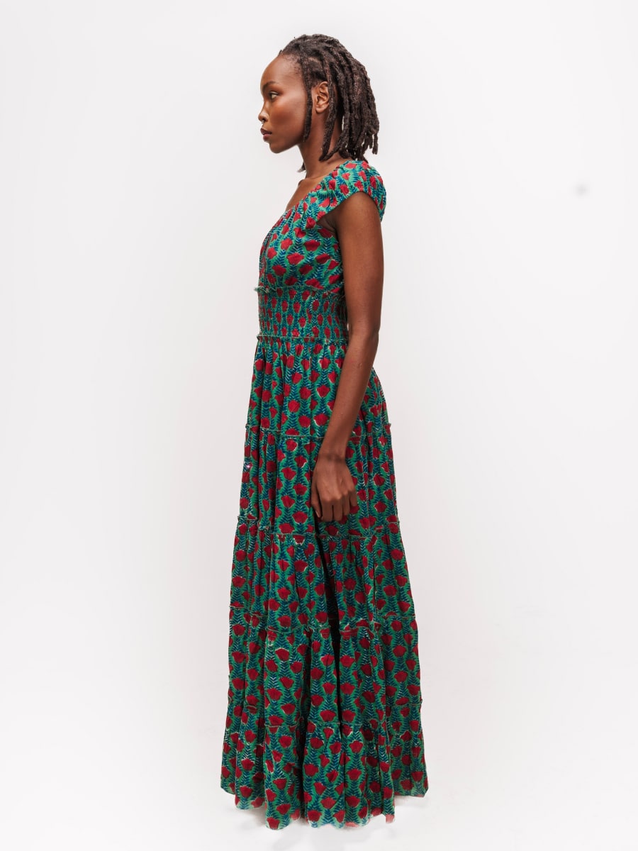 Inspired by the serene beauty of Manda Island off the Kenyan coast, the Manda Dress embodies effortless sophistication with a touch of timeless charm. Flowing to full length, this stunning dress is crafted in a selection of Indian block prints, celebrating heritage craftsmanship with intricate patterns and rich, earthy tones.