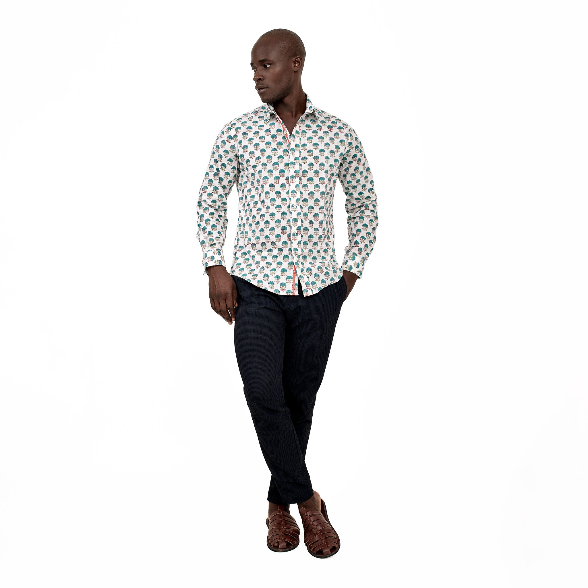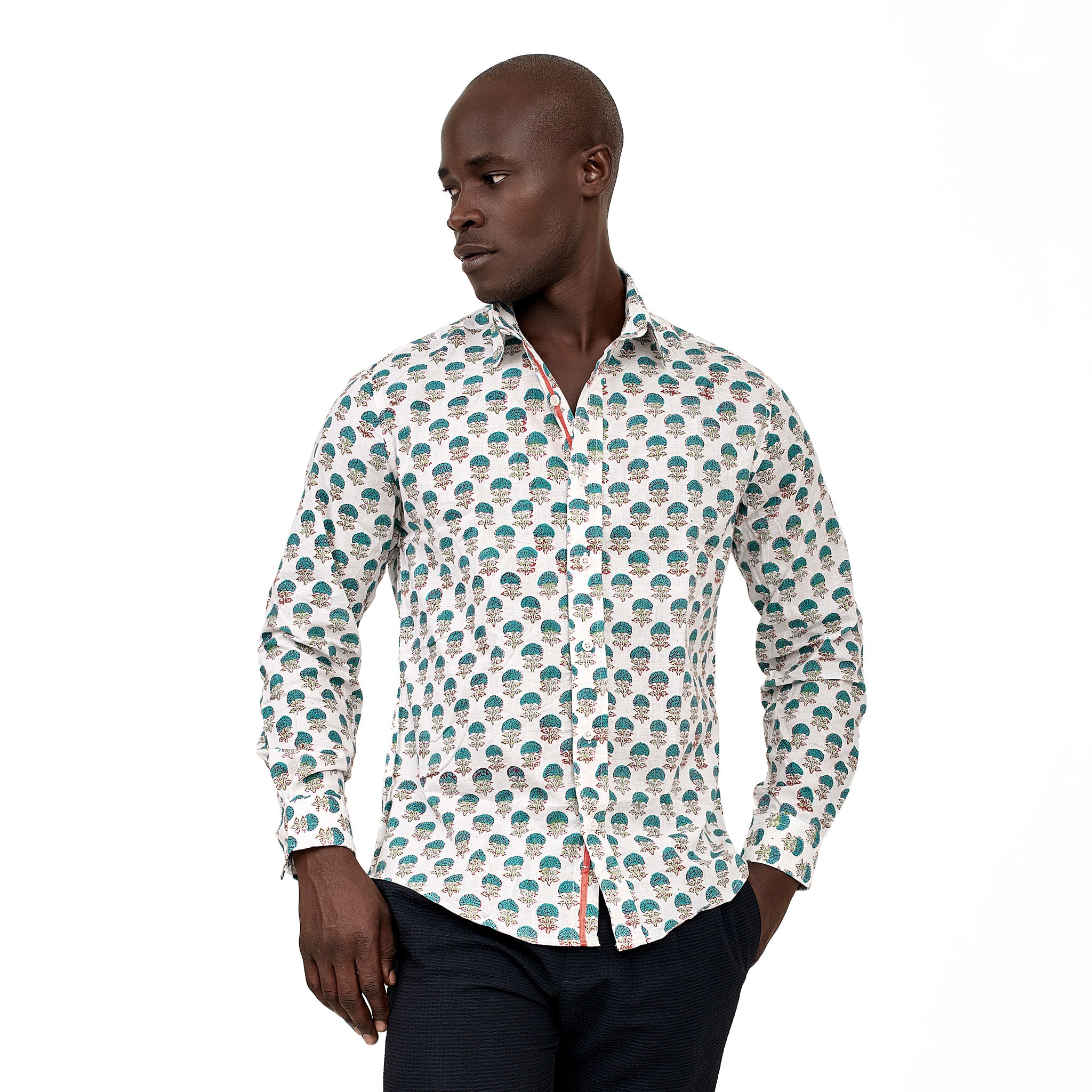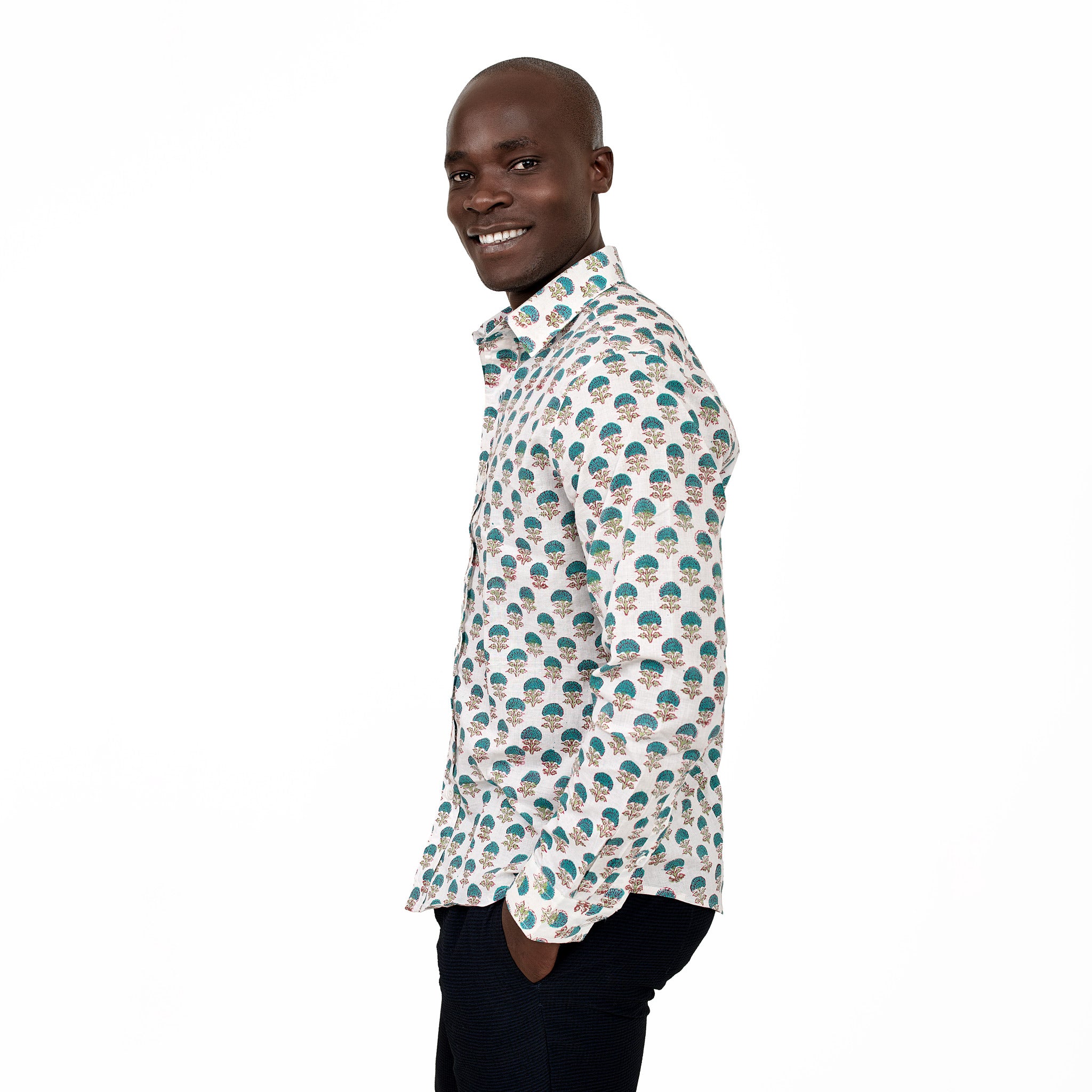 This Ol-bibi Shirt is designed with the traditional "Lion's Ear Flower" pattern, used by the Maasai community for medicinal purposes. Boasting lightweight, breathable material and a classic fit, this shirt ensures all-day comfort and style.