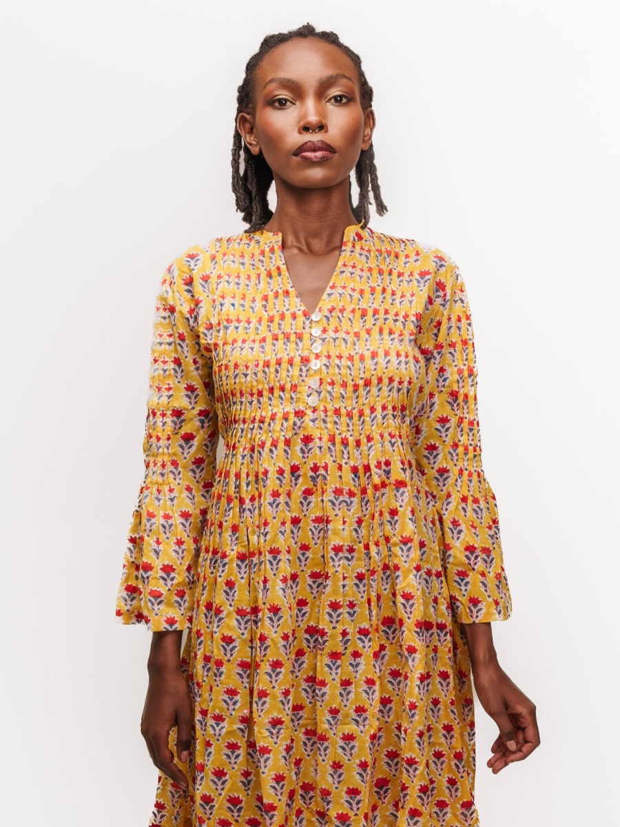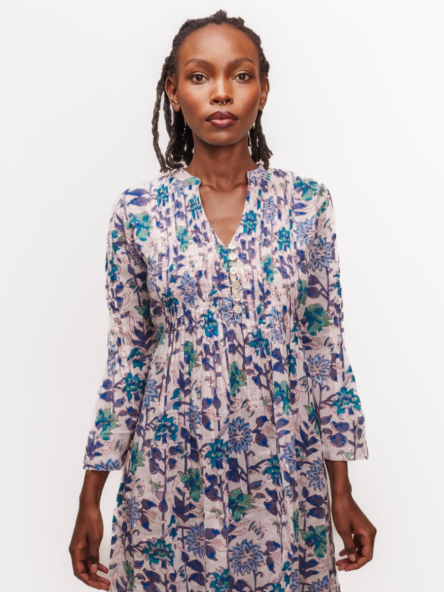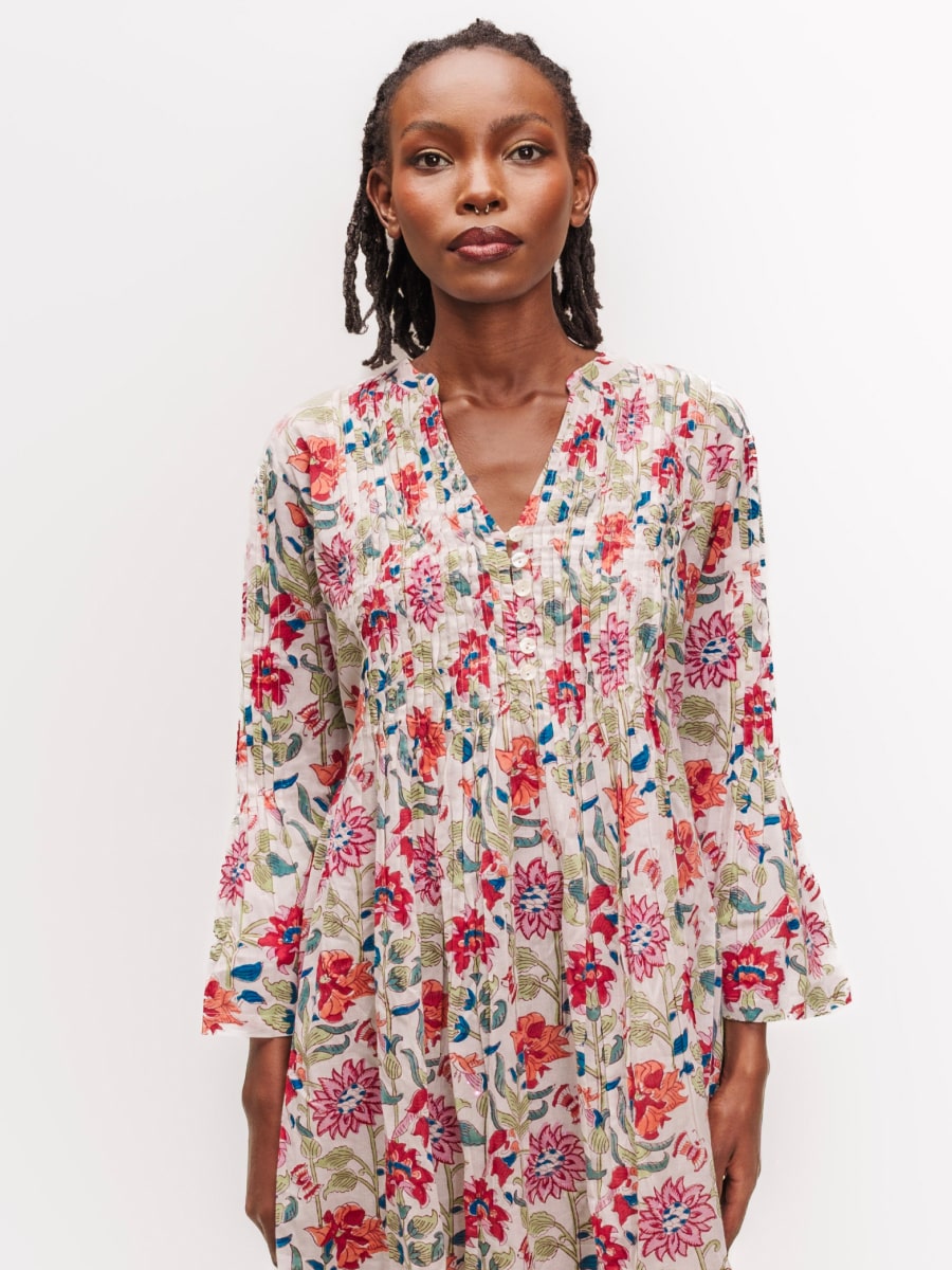 The Poa Dress is the perfect blend of comfort and style, designed for effortless everyday wear. Falling gracefully to knee length, this easy going silhouette is crafted in a selection of stunning Indian block prints, each showcasing the beauty of traditional craftsmanship.